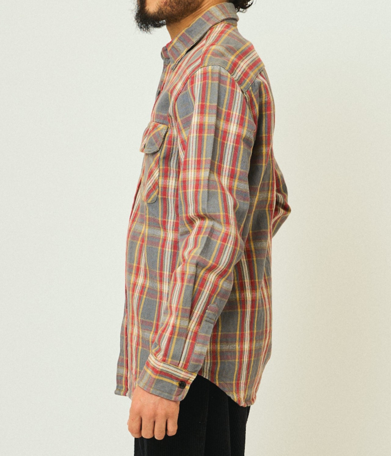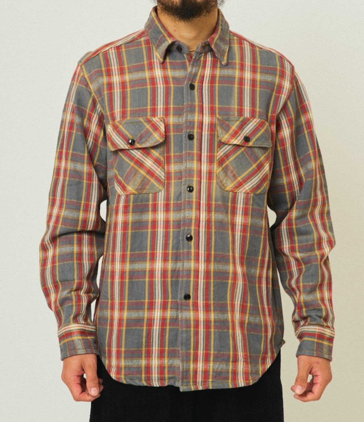 (BIG MIKE/ビッグマイク) Heavy Flannel Shirts / GRY×YEL×RED (メンズ)M/L/XLサイズ