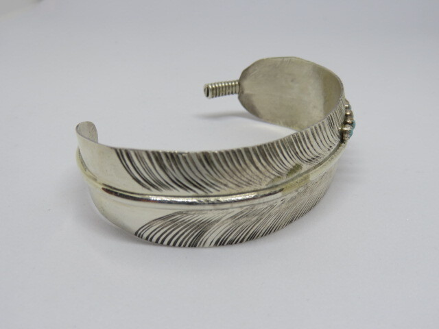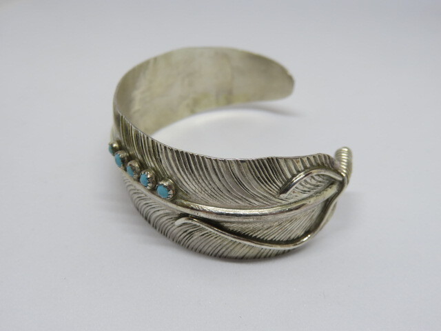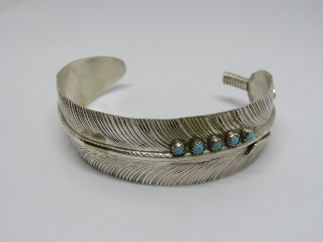 ■インディアンジュエリー■NAVAJO族(ナバホ族)VIVIAN JONES■バングル フェザー・ターコイズ(NAVAJO-B-019)■ハンドメイド■アリゾナ北部現地買付